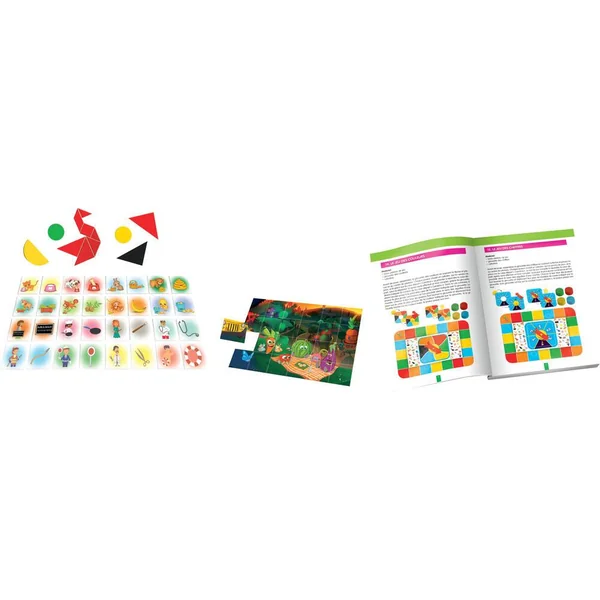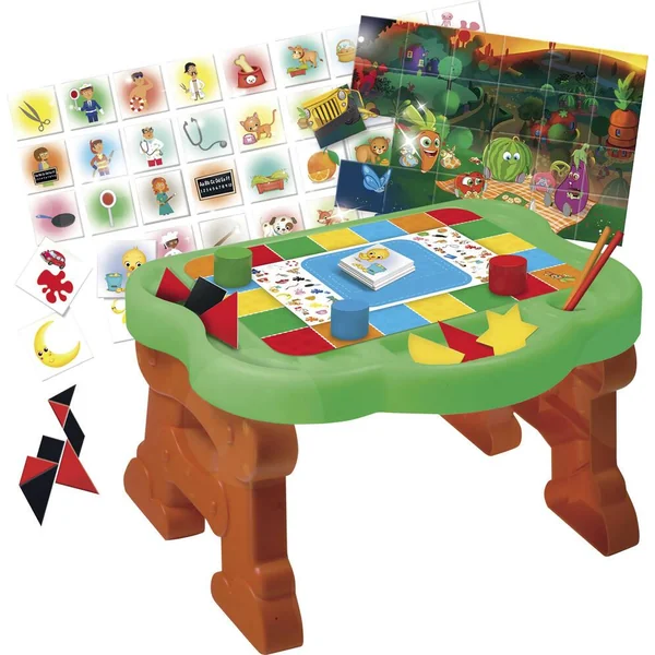 30 jeux éducatifs pour s’amuser sur le bureau de Carotina. Le jeu comprend un stylo effaçable pour apprendre à écrire et à dessiner. Le jeu inclut aussi un guide illustré pratique pour les parents, qui décrit tous les jeux et les activités, dont le Tangram, les jeux de mémoire et de parcours, et bien plus encore. Apprends les chiffres, les formes, les couleurs, les animaux. 1 bureau robuste, taille: 47x37x26. 5cm.