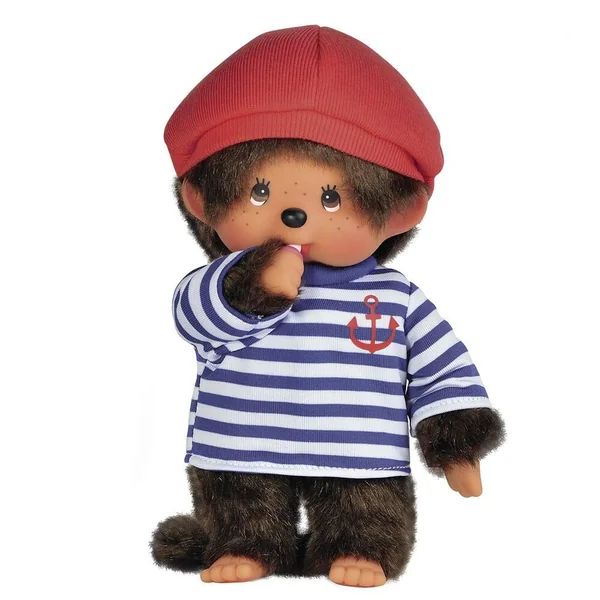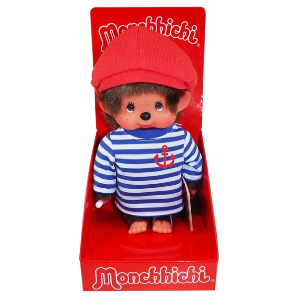 Craquez pour cette adorable peluche Monchhichi en version classique 20 cm. Ce célèbre compagnon à la fourrure marron est vêtu de sa marinière tendance à rayures bleues ET blanches et de son béret rouge. Adoptez la peluche iconique des années 80 en version marin.