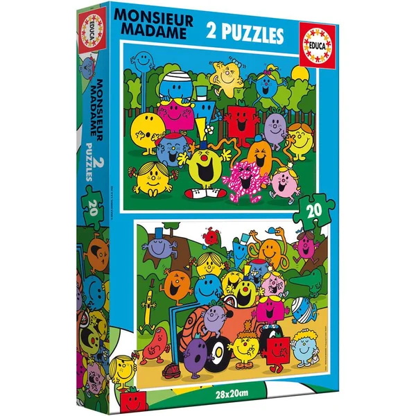 Retrouvez Monsieur Madame, son univers et ses amis dans cet ensemble de 2 puzzles de 20 pièces. Dimensions des puzzles assemblés : 28 x 20 cm.