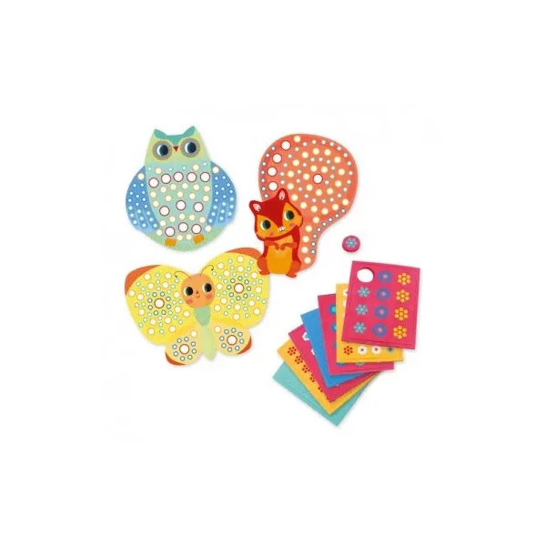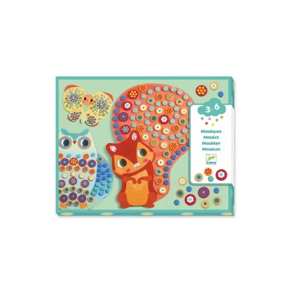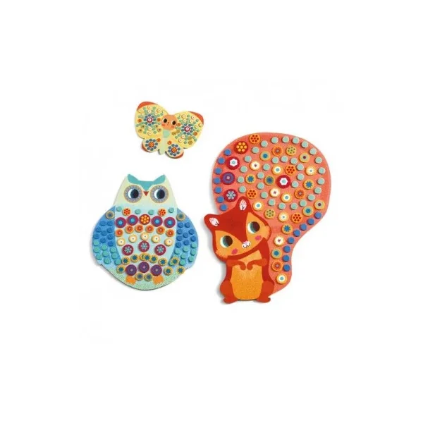 Découvrez la mosaïque Millefiori de Djeco, une activité de collage de mosaïque en mousse pour les enfants de 3 à 6 ans, 3 jolies silhouettes d’animaux à décorer avec patience.