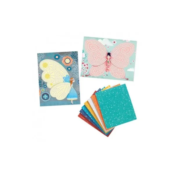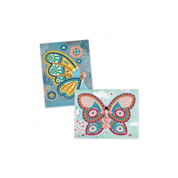 Découvrez la mosaïque Papillons de Djeco, une activité créative pour les filles à partir de 4 ans qui réaliseront pas à pas deux magnifiques tableaux de mosaiques pailletées sur le thème des papillons, une activité ludique et créative pour les enfants de 4 à 8 ans.