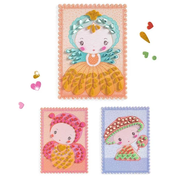 Trois cartes en carton épais à décorer, imprimées avec une mosaïque aux effets pailletés et brillants, pour créer un cadre raffiné et poétique. Inspirées par l’univers délicat des figurines Tinyly, ces activités miniature signées Virginie Brachet invitent à un moment de délicatesse et d’évasion. Chaque carte permet de faire revivre les adorables compagnons Stella, Minico et Mushy, inséparables des figurines Grace, Coco, et Amy, pour un résultat charmant et fidèle à l’esthétique précieuse de la collection Tinyly.