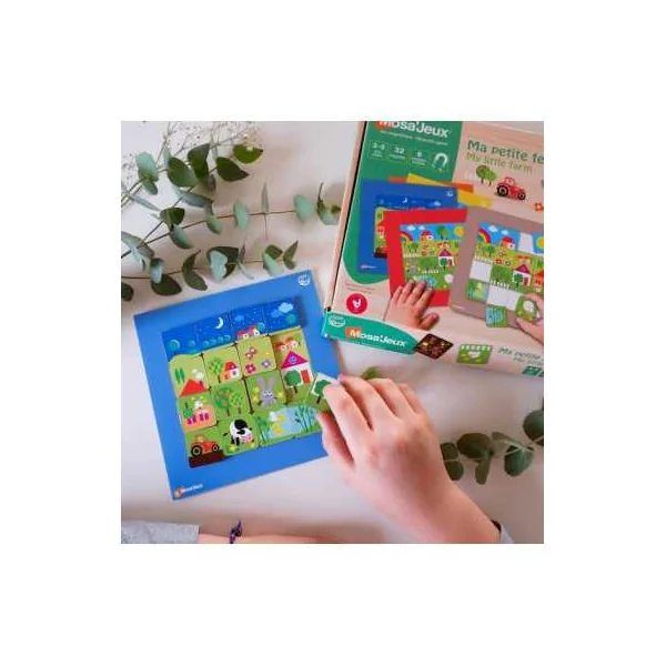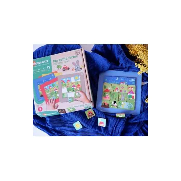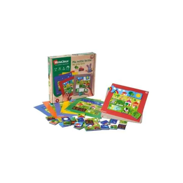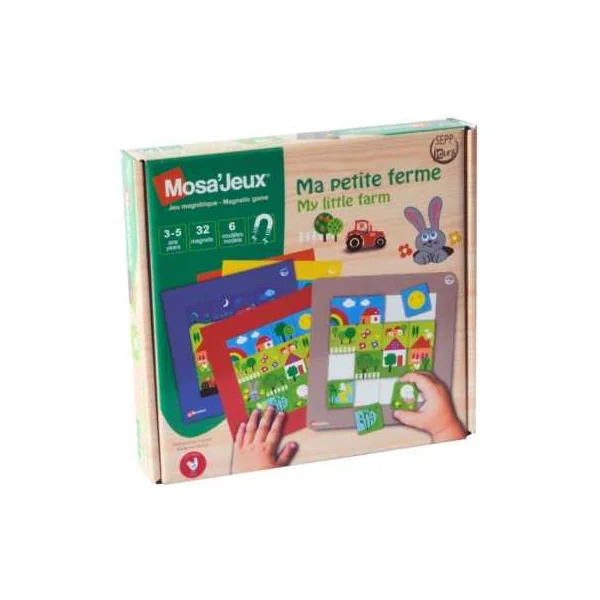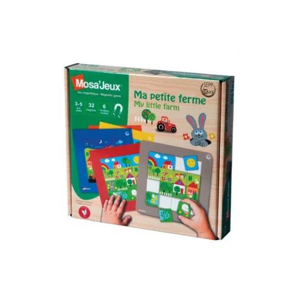 Découvrez le coffret Mosa’Jeux Ma petite ferme de SEPP Jeux, une mosaïque magnétique composée de pièces aimantées permettant aux enfants de reproduire des scènes sur le thème de la ferme. Un jeu éducatif fabriqué en France pour les enfants de 3 à 5 ans.