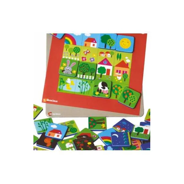 Après avoir choisi un modèle, l’enfant le place sur le plateau de jeu, puis il positionne les jetons magnétiques dessus pour reconstituer l’image. Il peut également placer les tuiles magnétiques librement pour inventer ses propres histoires.