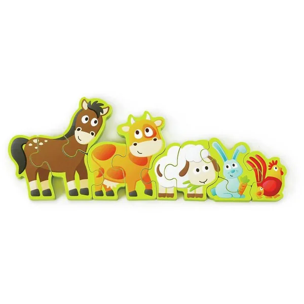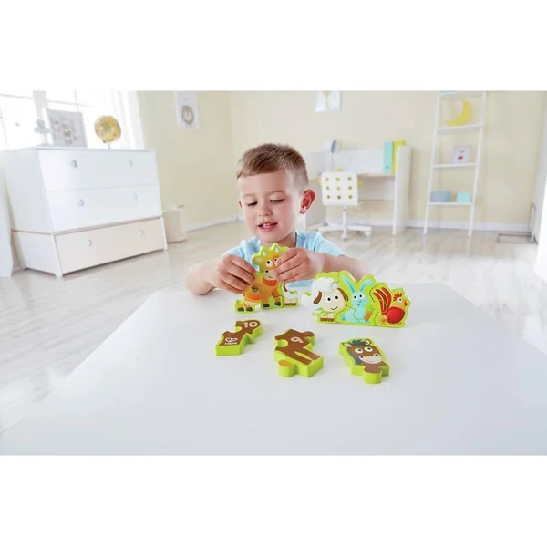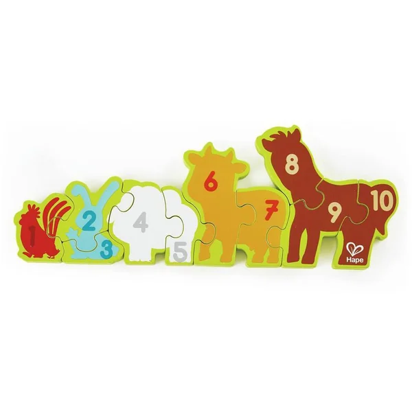 Le puzzle en bois réversible animaux de la ferme et chiffres de la marque Hape contient 10 pièces avec des animaux de la ferme sur une face et les chiffres de 1 à 10 sur l’autre. C’est idéal pour commencer à compter et reconnaître les animaux de la ferme.