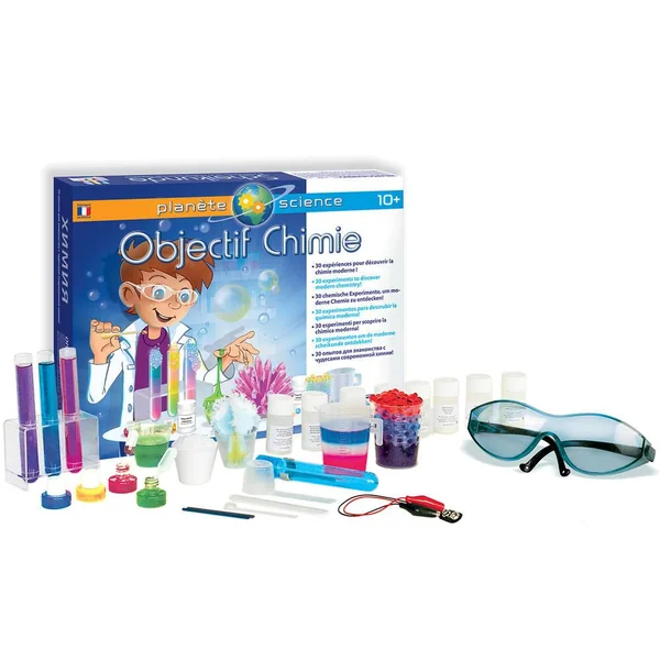 Ce petit laboratoire permet aux enfants de comprendre facilement la chimie en réalisant 30 expériences scientifiques grâce à 12 matières premières différentes. Ils vont ainsi réaliser des gels, de la neige artificielle, des bulles, des expériences effervescentes, ou découvrir les principes de la chromatographie et de la PHmétrie. Une source d’amusement et d’émerveillement pour que la chimie devienne une discipline ludique et mettre en application les connaissances des manuels scolaires. Un coffret idéal pour créer des vocations scientifiques.