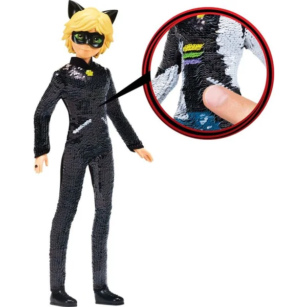 Adrien en version poupée de 26 cm dans un costume en sequins magique. Vous pouvez le changer à tout moment, il suffit de passer la main dessus.