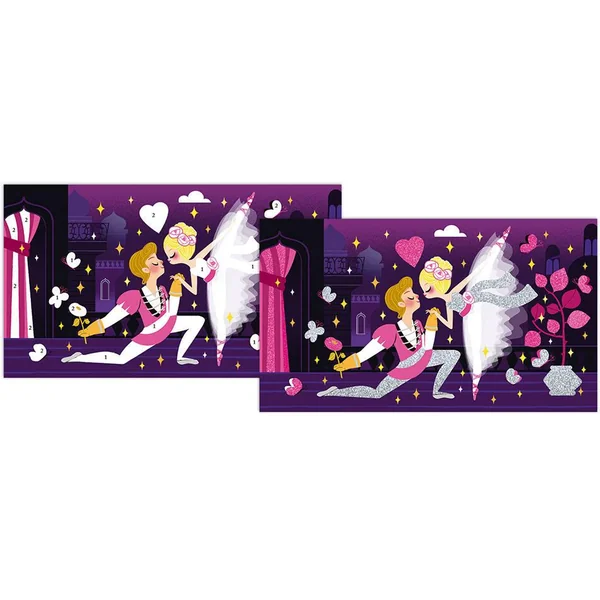 Ce coffret créatif Les ateliers du calme propose aux enfants de créer de magnifiques tableaux de danseuses avec des paillettes. Il suffit de déposer les paillettes de couleurs sur les tableaux autocollants. Facile et ludique, votre enfant peut ensuite décorer sa chambre avec ses créations. Ce kit créatif Paillettes fluo danseuses contient : 3 tableaux autocollants, 2 tubes de paillettes, 1 spatule. Grâce au livret explicatif, votre enfant est guidé pas à pas pour réaliser ses créations en toute autonomie.