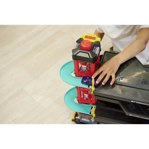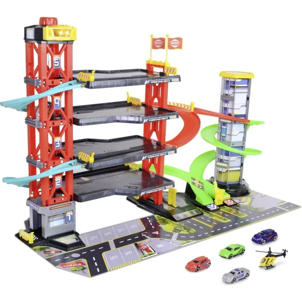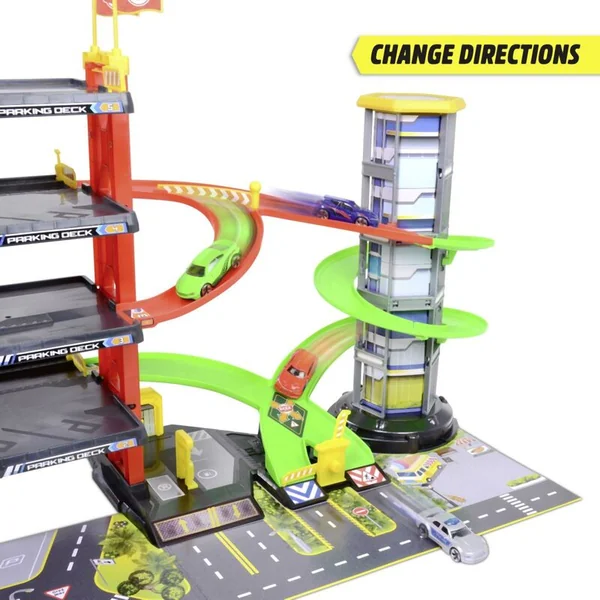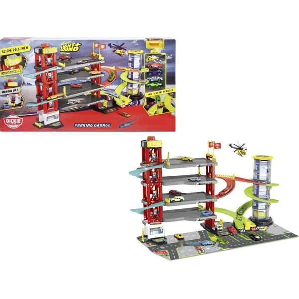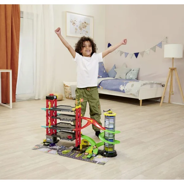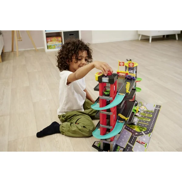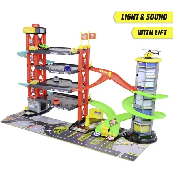 Le garage de stationnement a 4 étages, une piste, des fonctions sonores et lumineuses, un ascenseur manuel.