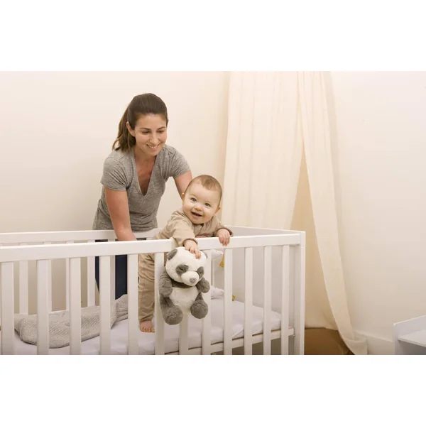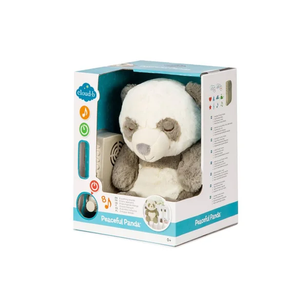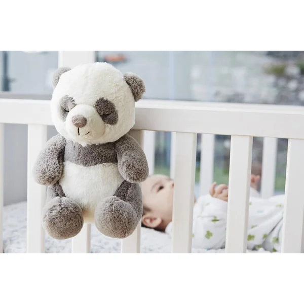 Peaceful Panda™ Cet adorable petit Panda sera le parfait compagnon de bébé pour jouer la journée et l’apaiser la nuit venue. Avec son boitier musical caché à l’intérieur, il lui jouera 4 douces mélodies et 4 bruits blancs pour l’endormir et lui offrir un sommeil réparateur. Plus en détails 4 mélodies apaisantes et 4 bruits blancs : Le rythme cardiaque de la mère / Scintillement des étoiles Pluies de printemps / Bercements Vagues de l’océan / Douce mélodie Chants des baleines / Mélodie apaisante Volume réglable Deux options de minuterie avec arrêt automatique: 23 et 45 minutes Languette velcro pour une fixation facile au lit de bébé Boitier musicale amovible. Peut être lavé et séché à la machine lorsque le boitier musical est retiré. Idéal pour les nouveau-nés et les jeunes enfants.