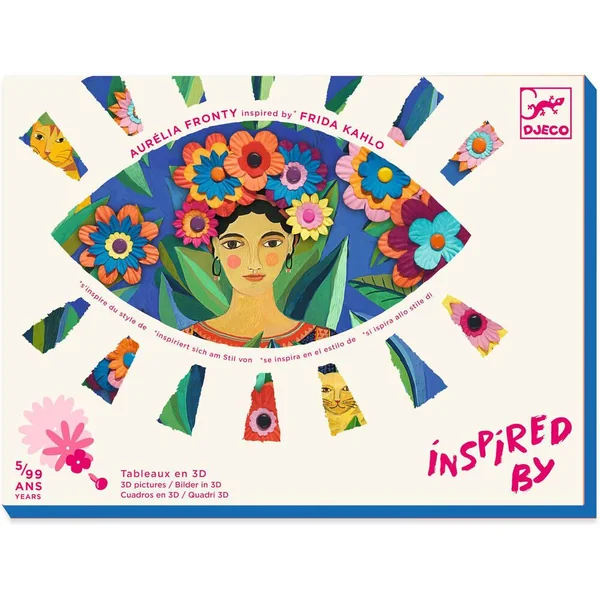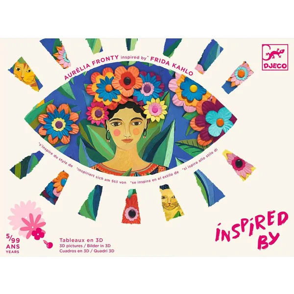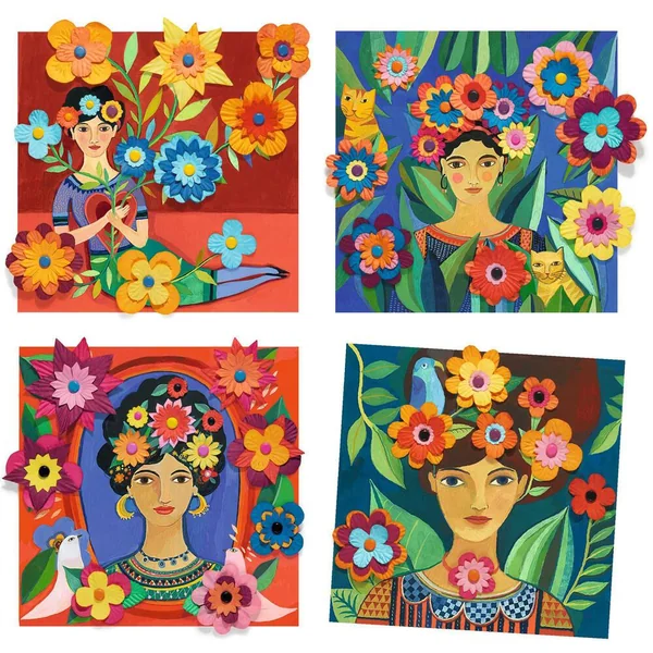 S’inspirant du travail de Frida Kahlo, où nature luxuriante et couleurs vives sont une ode à la vie, à l’amour et à la féminité, Aurélia Fronty propose d’enrichir 4 tableaux par l’assemblage et le collage de fleurs en papier gaufré.