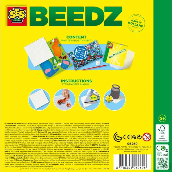 Avec ce kit de perles à repasser safari, tu peux créer de superbes animaux en 3D. Donne vie à un éléphant, un tigre ou un crocodile, construits sur plusieurs épaisseurs de perles à repasser. Colle les épaisseurs sur les parties imprimées pour créer des animaux de safari en 3D. Ton safari prend vie petit à petit ! Les perles à repasser de SES Creative ne contiennent pas de PVC et sont de la plus grande qualité. Tu peux créer pendant des heures et le résultat est toujours coloré.