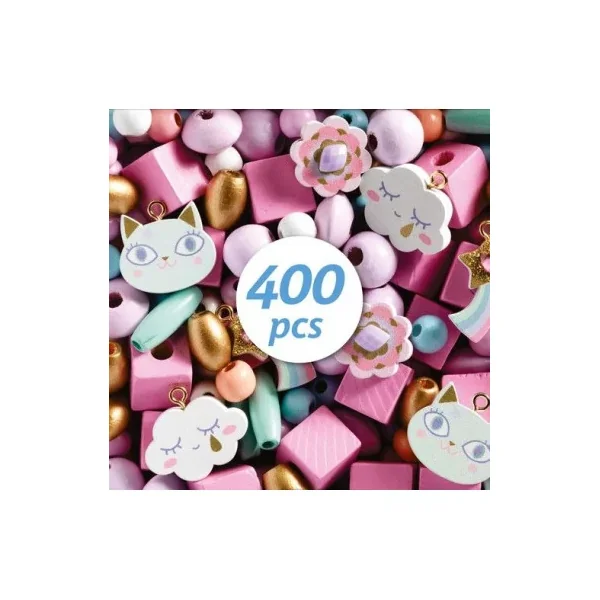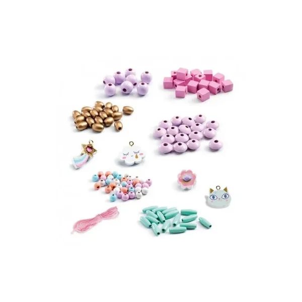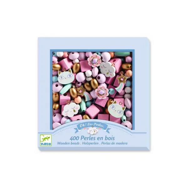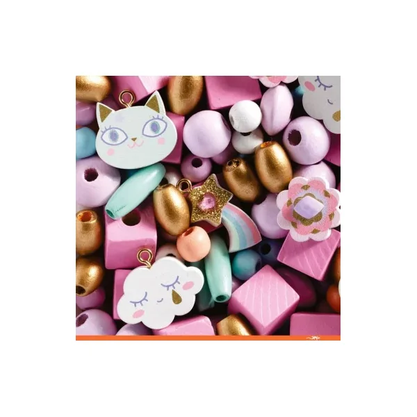 Découvrez les perles en bois arc en ciel de Djeco400 perles en bois pour réaliser des bijoux pour les enfants de 4 à 8 ans. Nuages, chats, fleurs et arc-en ciel à enfiler pour créer ses propres bijoux.