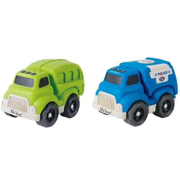 Petites voitures composées de fibres de blé. Plastique recyclable et biodégradable Stimule la dextérité et éveille les sens grâce aux couleurs vives et à la matière originale