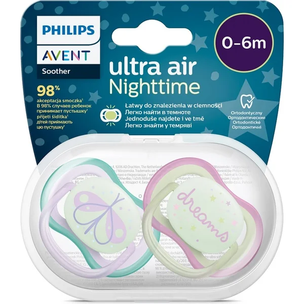 Philips AVENT Sucette Ultra air nuit 0-6m fille 2pcs
