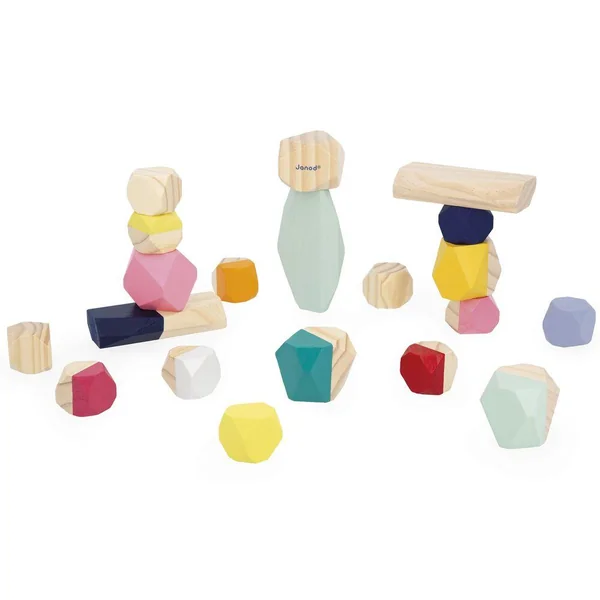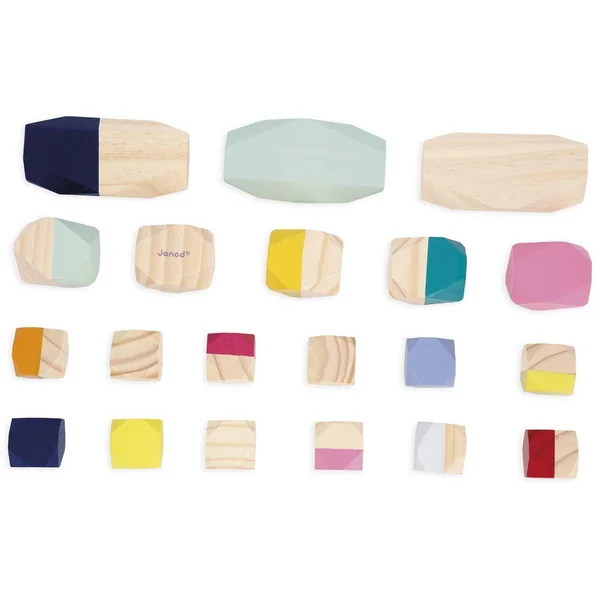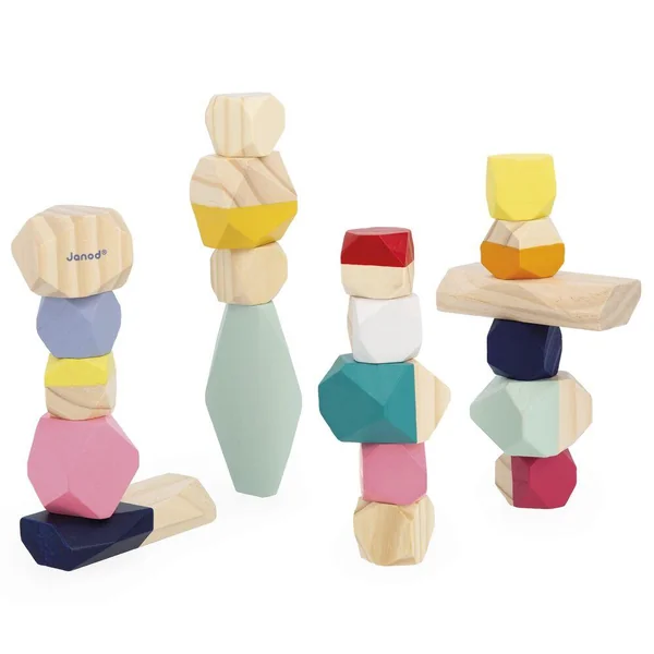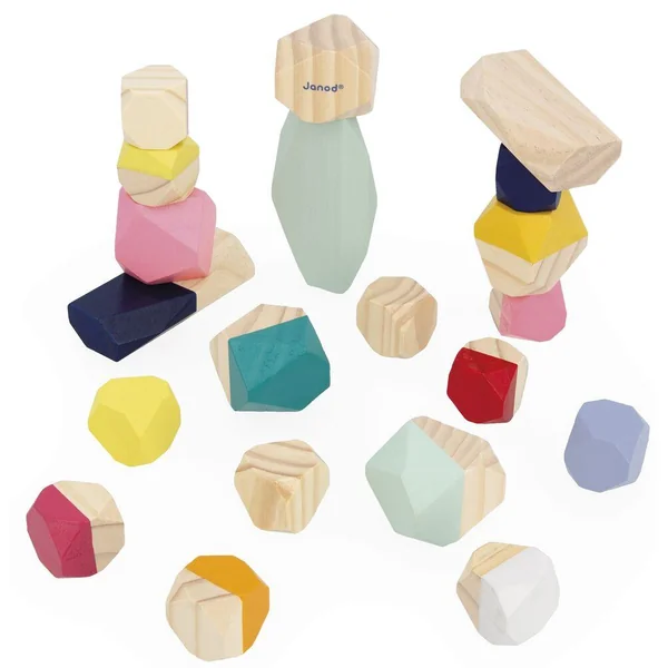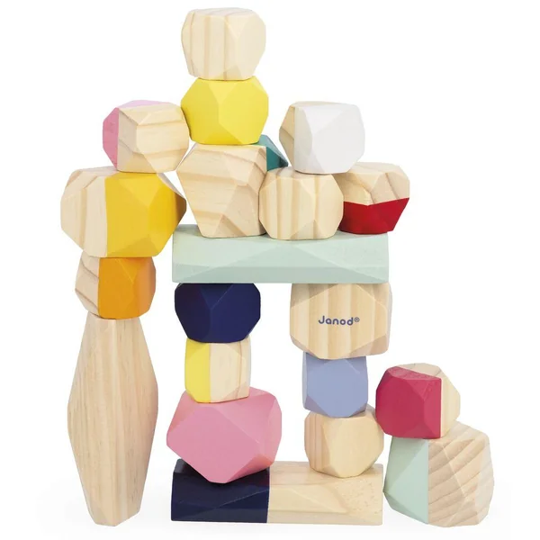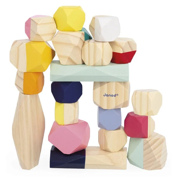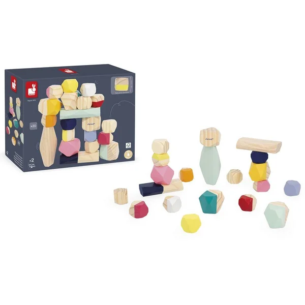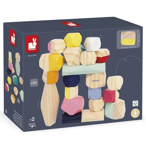 20 pierres en bois toutes légères à empiler pour faire découvrir la construction et l’équilibre à votre enfant. Une gamme aux couleurs délicates, inspirée des tendances actuelles pour accompagner les premiers apprentissages de votre enfant tout en douceur ! Grandes pierres : 12 x 2,5 x 6 cm Peinture à l’eau. Bois : pin.