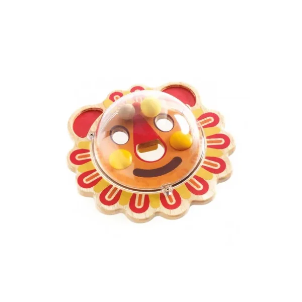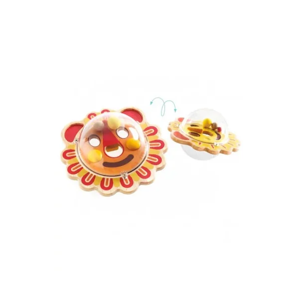 En s’appuyant sur une table, l’enfant doit faire basculer la balle pour diriger facilement les billes autour des murets et vers le trou afin de les faire disparaître. Une fois la mission réussie, il retourne le jouet pour trouver un autre défi avec une image et un circuit différents.