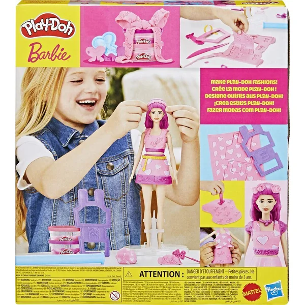 On crée des tenues super mignonnes avec le coffret Cœurs et coiffure ! C’est facile et amusant de créer des tenues Play-Doh pour Barbie avec ce coffret de loisirs créatifs. Il suffit de placer la poupée sur le socle, d’utiliser la feuille à motifs Play-Doh et les emporte-pièces pour découper des robes pour Barbie et l’habiller de manière créative et imaginative. On peut lui créer deux coiffures Play-Doh différentes avec les moules à cheveux courts et longs, ou réaliser sa propre coiffure. Les accessoires de poupée Barbie comme une ceinture et des chaussures viendront compléter sa tenue. Les enfants laisseront libre cours à leur imagination en ajoutant encore plus de détails avec les 2 pots de pâte à modeler Play-Doh. C’est un cadeau fabuleux pour les enfants qui aiment les coffrets Barbie et les jouets Play-Doh ! Copyright 2025 Mattel. PLAY-DOH, HASBRO et les marques de commerce et logos associés sont des marques de commerce appartenant à Hasbro, Inc.
