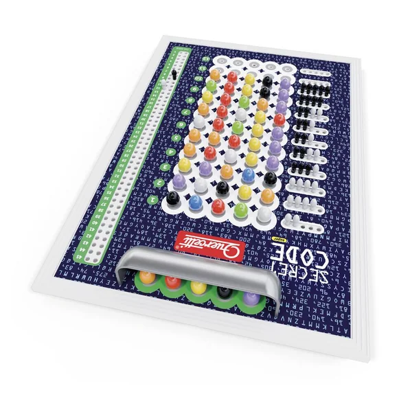 En utilisant le raisonnement déductif et la logique, le « déchiffreur » devra découvrir le « code secret » composé par son adversaire, le « codeur », avec le moins de tentatives possibles. Ce sera alors à son tour de créer une combinaison de couleurs si complexe qu’elle entravera toute tentative de décodage de l’adversaire. Les dépliants illustrés inclus indiquent les différents degrés de difficulté du code secret, qui peut être composé de 4 ou 5 positions, en utilisant les 8 couleurs disponibles. Nombre de joueurs : 2 ou plus. 2 niveaux de difficulté.