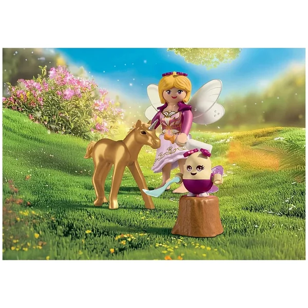 The PLAYMOBIL playset is designed to immerse children in a world of fantasy, where they can explore the bond between the fairy and her new friend. The set includes a variety of accessories that enhance the storytelling experience, such as a carafe, milk bottle, and sparkling fairy wings. These elements allow children to engage in nurturing play, as they bottle-feed the foal and provide it with the love and care it needs. Every moment spent with this playset is an opportunity for creativity and imaginative storytelling.