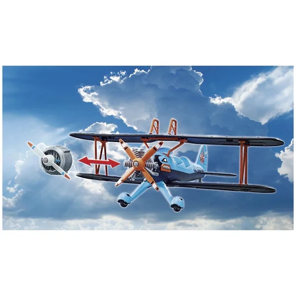 The Playmobil Stuntshow Air Double-Decker Phoenix features a stunning aircraft that takes off with style. As the engine roars to life and the propeller spins, children can experience the rush of takeoff as the plane ascends gracefully into the sky. The pilot, equipped with a keen sense of adventure, performs breathtaking tricks and maneuvers, looping around two large pylons that add an extra layer of challenge and excitement to the flight experience. This dynamic playset encourages imaginative storytelling and role-playing, making it a perfect addition to any child’s toy collection.
