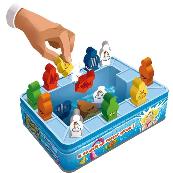 Poussez les autres à l’eau pour être le dernier au bord de la piscine. Rusez pour ne pas dévoiler votre couleur secrète et piéger les adversaires !