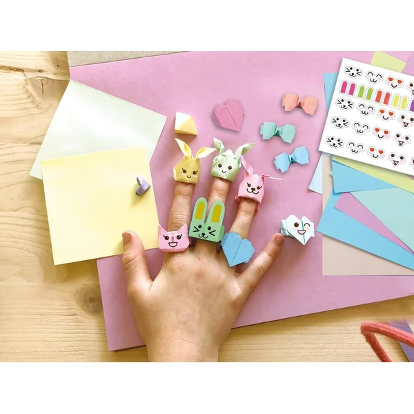 Découvre le plaisir de plier et de créer des bijoux Kawaï en papier ! Les techniques sont expliquées grâce au livret inclus dans cette jolie pochette servant aussi de rangement. Ce kit contient : 25 feuilles de couleurs différentes, 1 planche d’autocollants et 1 livret d’instructions.