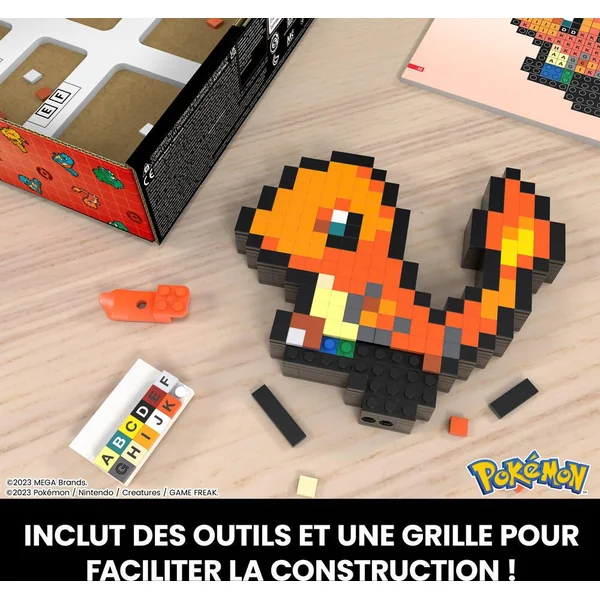 349 briques «pixel art» pour construire un Salamèche comme dans le premier jeu vidéo. Inclus un outil de construction, une base d’exposition et un crochet –