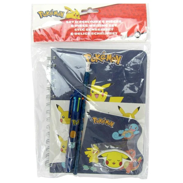 Set scolaire composé de : 1 carnet à spirale format A5, 1 stylo multi couleurs, des autocollants, 1 crayon de papier, 1 gomme, et 1 petit carnet (bloc-notes). Dimensions du set : 21 x 16 x 1.5 cm.