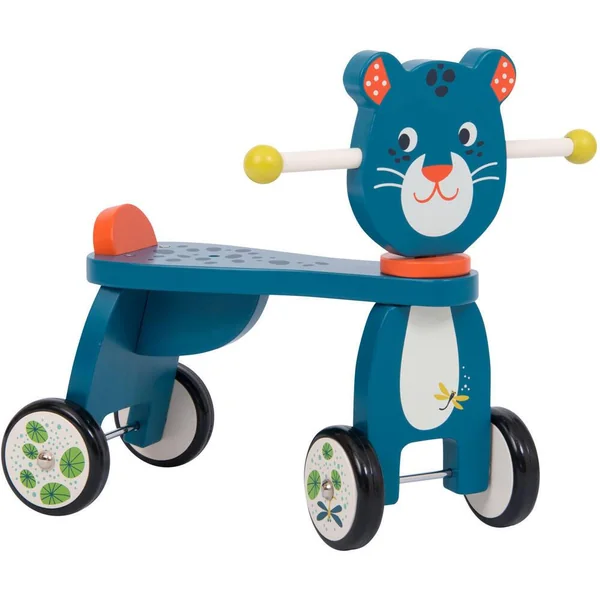 Porteur en bois Zimba la panthère pour rouler comme au milieu de la jungle ! L’enfant à partir d’un an pourra se déplacer facilement, tout en développant son équilibre et sa motricité.