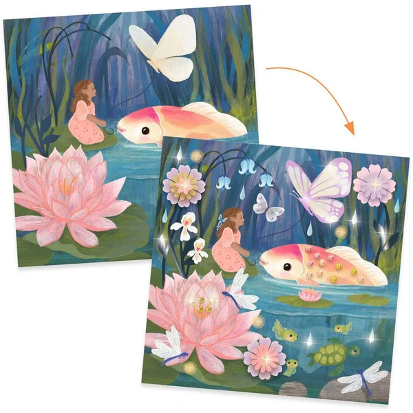 L’enfant vient embellir chaque tableau à l’aide de décalcomanies, de fleurs en papier, de strass autocollants et de motifs à métalliser. Soit 4 fois plus d’activités pour un résultat 4 fois plus épatant !