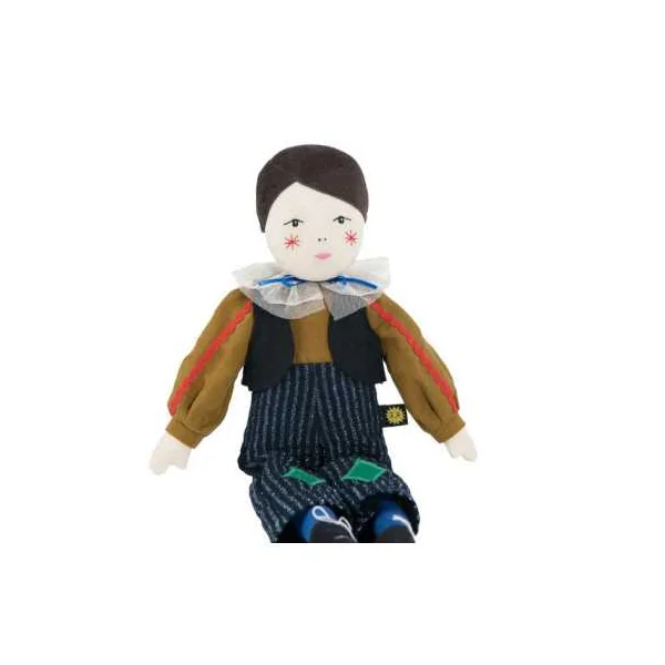 Découvrez la Poupée Enzo de la collection Les comètes filantes de Moulin Roty, une poupée en tissu de 43 cm au visage doux et entièrement brodé.