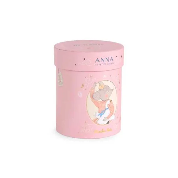 Souris Anna en velours, au doux visage brodé et joues délicatement poudrées. Col claudine, jupe rayée et ballerines nouées, elle est tout de rose vêtue. Amie idéale pour partager des instants féeriques, elle est présentée dans une boite cadeau ronde avec dorures.