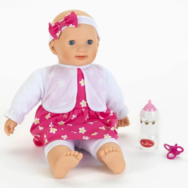 En plus d’être mignon à croquer, ce poupon bénéficie de 30 fonctions réalistes pour entrer en interaction avec toi ! – bruits de succion lorsque tu lui donnes le biberon ou la tétine – il rouspète quand il n’a pas pris le biberon assez longtemps – ses petits rots indiquent qu’il est rassasié ! – dit « maman » et « papa » lorsque tu appuies sur sa main droite – pleure quand tu appuies sur son pied gauche – gazouille quand tu appuies sur son pied droit – rigole quand tu appuies sur le ventre Poupon fourni avec un biberon et une tétine. A toi désormais de bien t’occuper de lui !