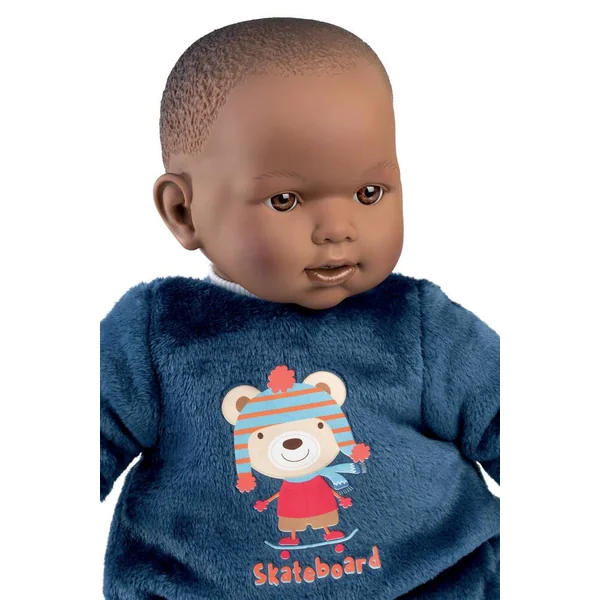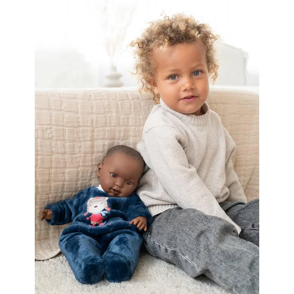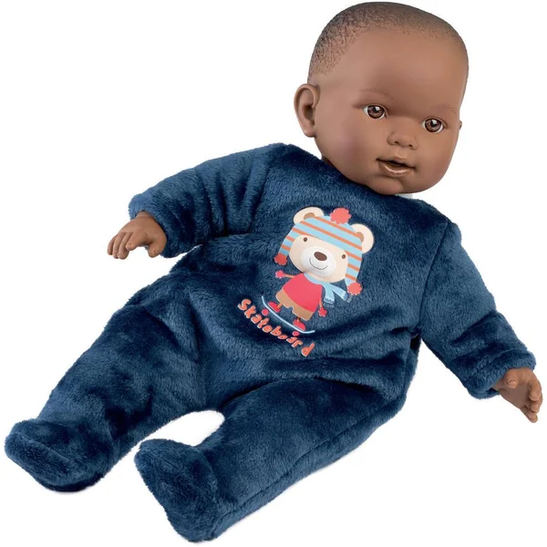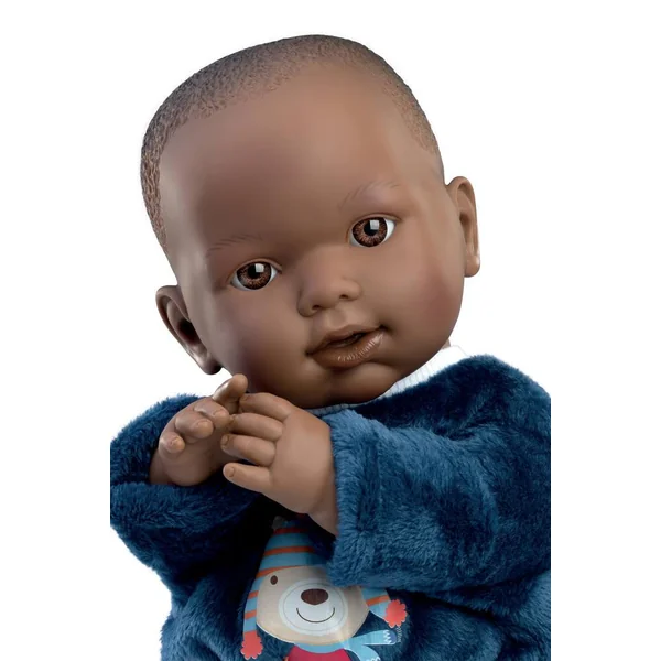 Habillé d’un pyjama bleu orné de motifs attrayants, le bébé noir de 42 cm se distingue par ses traits réalistes, notamment ses cheveux gravés. Avec sa taille parfaite, ce poupon s’intègre naturellement dans le monde des poupées et des poupons, favorisant des jeux d’imitation enrichissants.