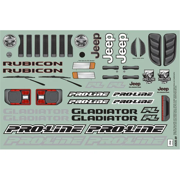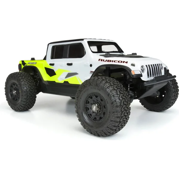 Carrosserie Pro-Line transparente Jeep Gladiator Rubicon, pour modèles RC de voitures Short Course et Monster Truck à l’échelle 1:10, empattement 330mm, hauteur 478mm, largeur 142mm. Fabriqué en lexan résistant.