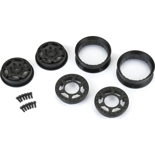 Jantes Pro-Line 1.9″ Holcomb Crawler Bead-Loc (2 pcs), pour modèles RC de voitures Crawler 1:10. Couleur noire. L’hexagone est de 12 mm. Construction en 3 pièces pour pneus ProLine 1.9″.