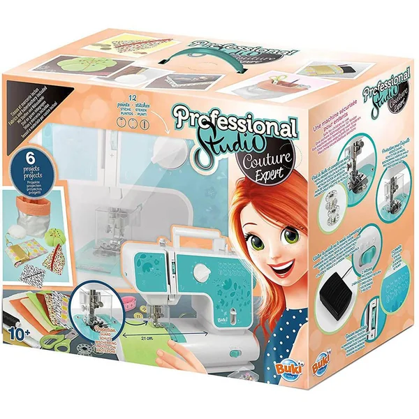 Une machine à coudre pour apprendre les bases de la couture et réaliser 6 projets tendances : marque-page, porte-clé, vide poche, pochette, porte monnaie et coussin à aiguilles ! La vitesse de la machine est adaptée aux enfants avec 2 vitesses en mode automatique ou l’utilisation de la pédale. L’enfant peut choisir 12 points différents dont le point ziz-zag pour surfiler les tissus. Une machine spécialement conçue pour les enfants avec une grande zone de travail, une protection pour l’aiguille, un enfilage et un réglage de la tension facile ! Les tissus utilisés pour les projets ont chacun une texture différente: fourrure, coton enduit, jersey, coton, feutrine, simili-cuir. De nombreux accessoires dont des canettes en métal et des aiguilles de rechange pour la machine sont fournis. Les réalisations et les bases de la couture sont expliquées pas à pas dans une notice illustrée agrémentée de flashcodes pour accéder à des tutoriels vidéo ! La machine fonctionne avec adaptateur secteur inclus. Notice illustrée en couleurs.