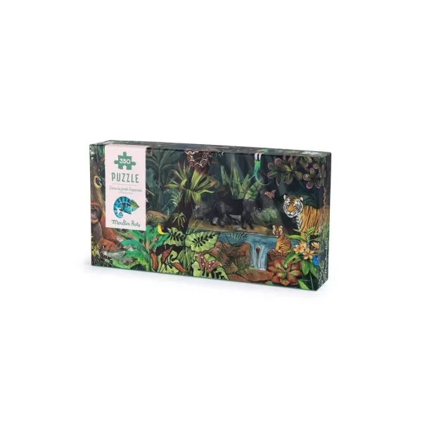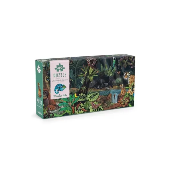Découvrez le puzzle 350 pièces dans la forêt tropicale de la collectionTout autour du monde de Moulin Roty, un magnifique puzzle de 350 pièces, pour les enfants dès 7 ans.