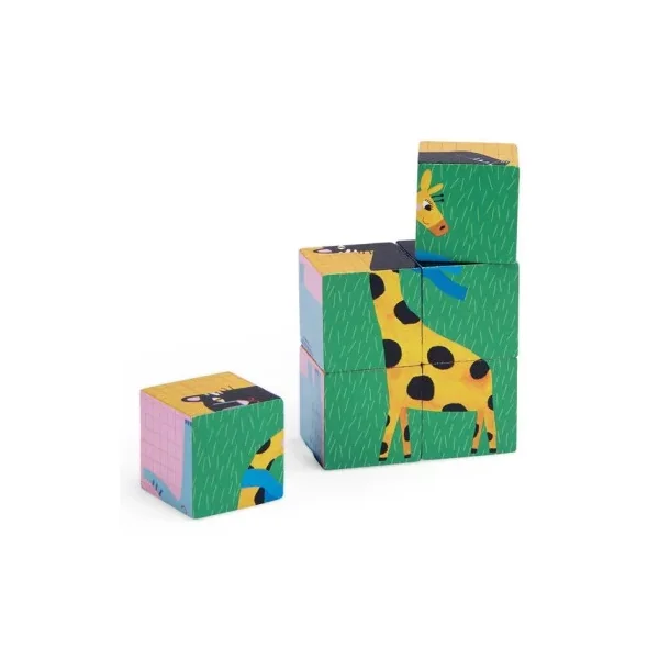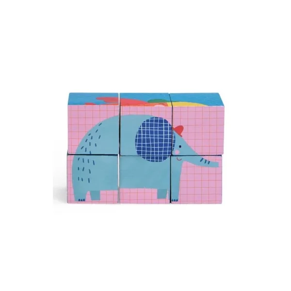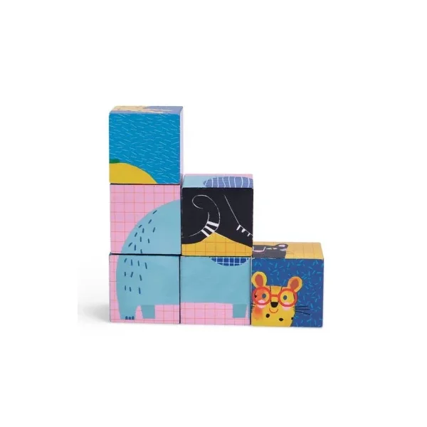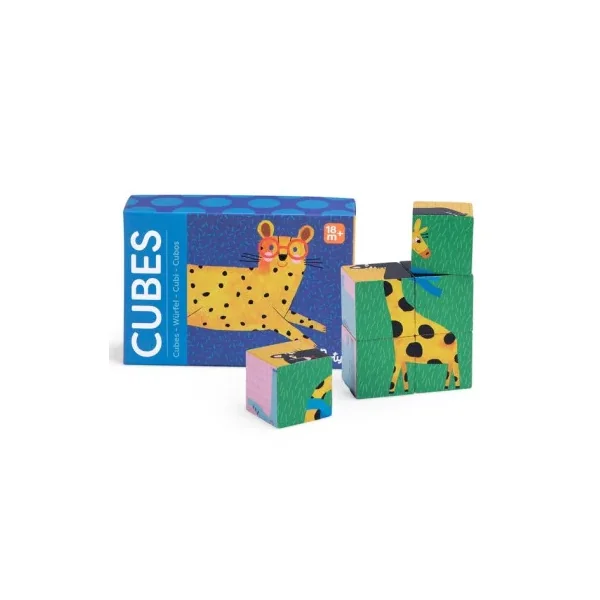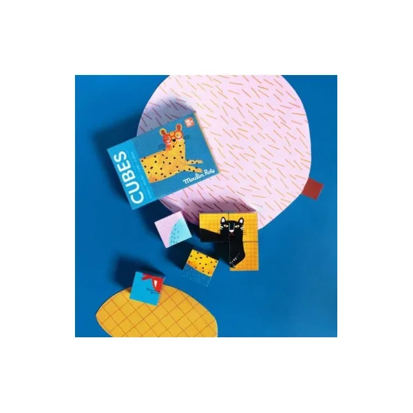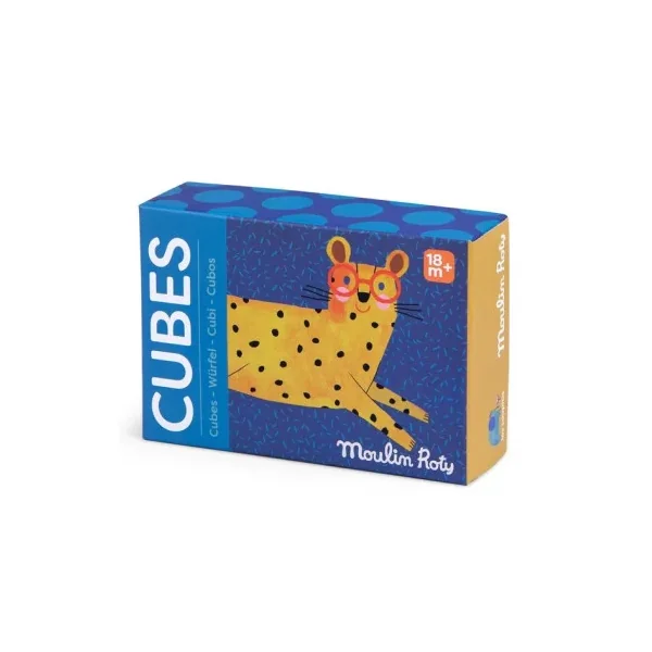 Découvrez le puzzle 6 cubes de la collection Les toupitis de Moulin Roty, des cubes en bois faciles à manier pour les enfants à partir de 18 mois.