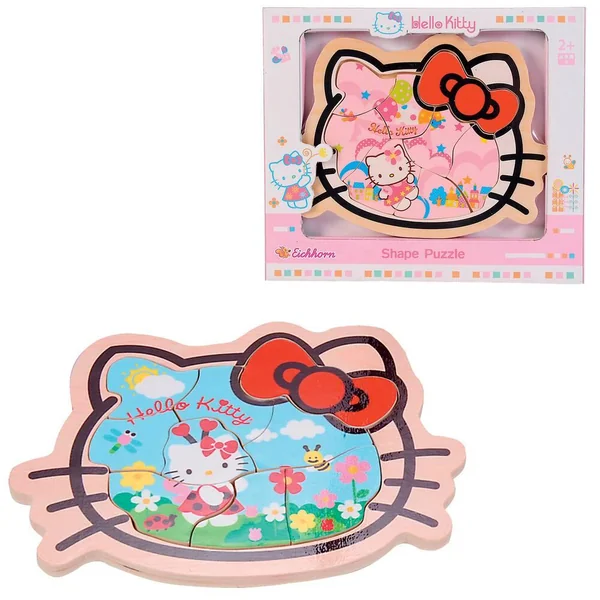 Puzzle ayant la forme de la tête d’Hello Kitty composé de 8 pièces et 1 plateau en bois. Modèle selon disponibilité. Vendu à l’unité.