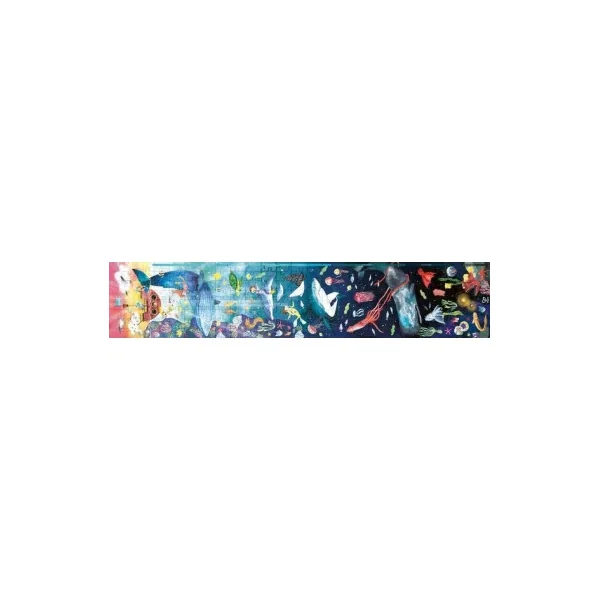 Baleine, hippocampe, dauphin, méduse, poulpe, calamar, tortue… Visitez le monde somptueux et mystérieux de la vie aquatique, en réalisant ce magnifique puzzle sur le thème de la mer. Puis, éteignez les lumières pour voir briller sous un autre œil le monde aquatique!