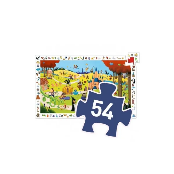Découvrez le puzzle d’observation contes de Djeco, un puzzle magnifiquement illustré de 54 pièces en carton pour les enfants dès 4 ans sur le thème des contes.