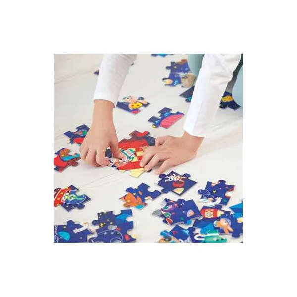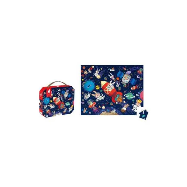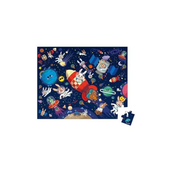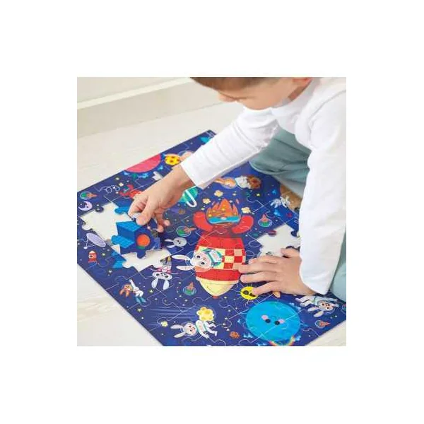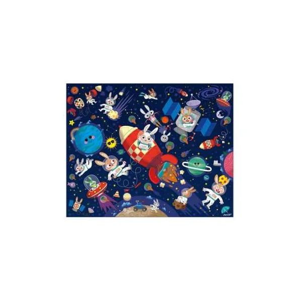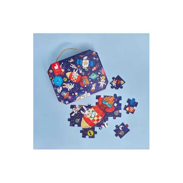 Après avoir assemblé les 54 pièces du puzzle, votre enfant embarquera pour une fantastique aventure à bord de la célèbre fusée Janod en compagnie de nombreux lapins, l’animal emblématique de la marque.