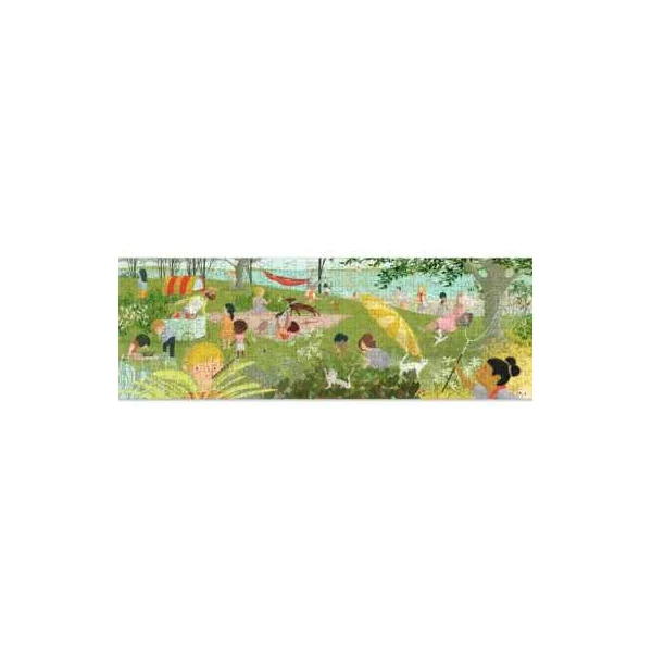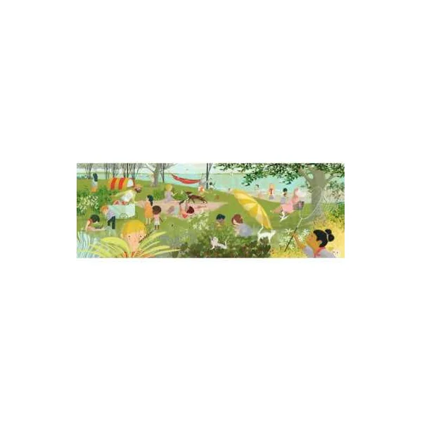 Patience et concentration sont au programme pour réaliser ce splendide puzzle qui nous transporte près d’un lac pour passer une belle journée ensoleillée. En assemblant les pièces une à une, l’enfant prend plaisir à observer les couleurs, les formes et les éléments du décor. Le format inédit tout en longueur offre une expérience de jeu différente des puzzles traditionnels et met particulièrement en valeur le travail artistique de l’illustrateur.