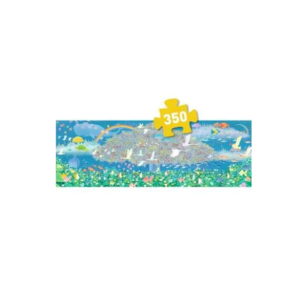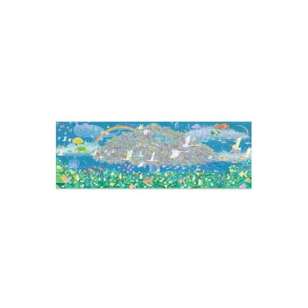 Patience et concentration sont au programme pour réaliser ce splendide puzzle qui invite à s’évader dans un décor doux et fantastique. En assemblant les pièces une à une, l’enfant se laisse porter par une scène pleine de poésie, où les formes, les couleurs et les personnages créent une atmosphère rêveuse et apaisante. Le format inédit tout en longueur offre une expérience de jeu différente des puzzles traditionnels et met particulièrement en valeur le travail artistique de l’illustrateur.