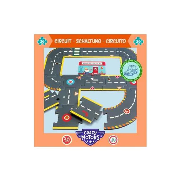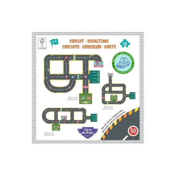 Découvrez le puzzle géant Circuit city de Djeco, un puzzle géant composé de 26 pièces en carton pour les enfants à partir de 3 ans. 26 pièces pour créer différents circuits et jouer avec les voitures Crazy Motors.