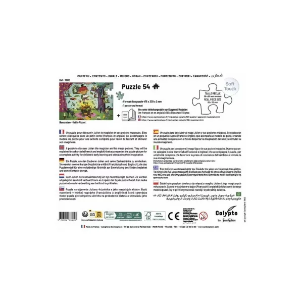 Découvrez le puzzle L’apprenti magicien de la collection Calypto de Sentosphère, un puzzle de 54 pièces en carton, fabriqué en France, pour les enfants dès 5 ans.