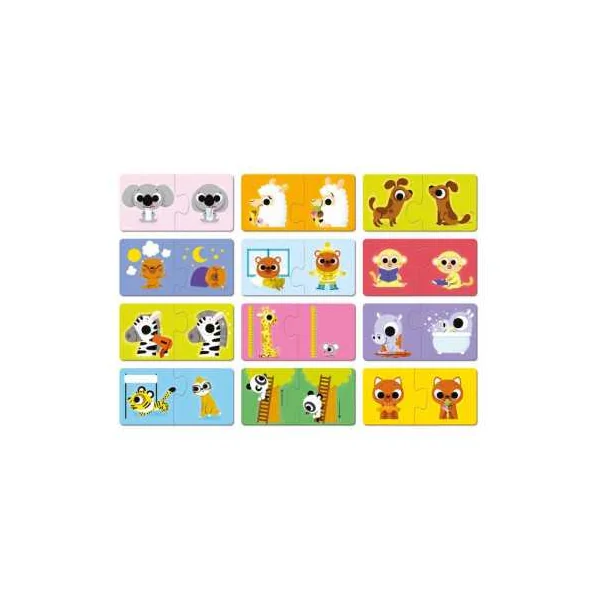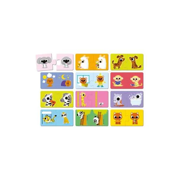 Le coffret contient 24 pièces permettant de réaliser 12 puzzles de 2 pièces. Un jeu éducatif qui permet aux enfants d’appréhender les notions de contraires : propre/sale, chaud/froid, grand/petit, jour/nuit… Un puzzle auto correctif, car seules les pièces correspondantes forment un puzzle parfait.