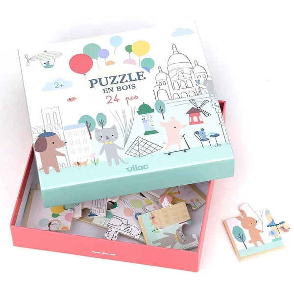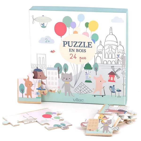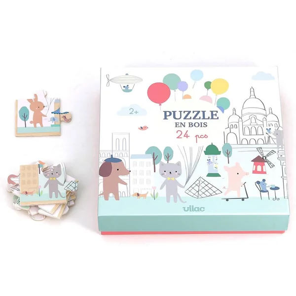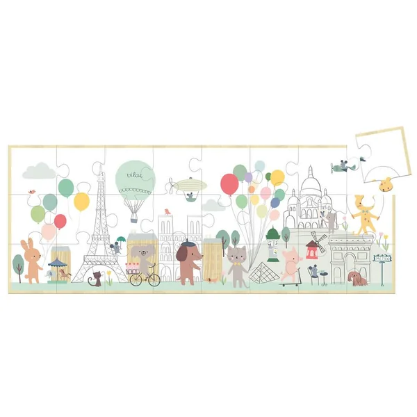 Puzzle panoramique Paris par Sarah Betz en 24 pièces. Entrez dans le monde merveilleux et poétique de Sarah Betz. Ce puzzle en bois de 24 pièces représentants des animaux dans Paris permettra à votre enfant de développer son observation, sa concentration et sa motricité fine tout en s’amusant.
